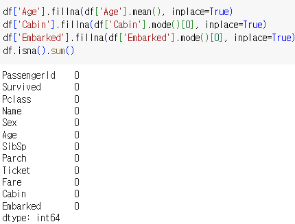결측치를 채울 때에는 df.fillna()를 사용한다.
