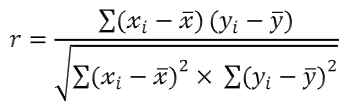 모상관계수 $\rho$는 공분산을 각 표준편차의 곱으로 나눈 값이다. 표본 크기가 $n$일 때 표본분산은 모분산의 $1/n$배, 표본표준편차는 모표준편차의 $1/\sqrt{n}$배임을 감안하면, 표본상관계수 $r$의 식은 분모, 분자에 곱해진 값들이 상쇄되어 모상관계수의 식과 동일해짐을 확인할 수 있다.